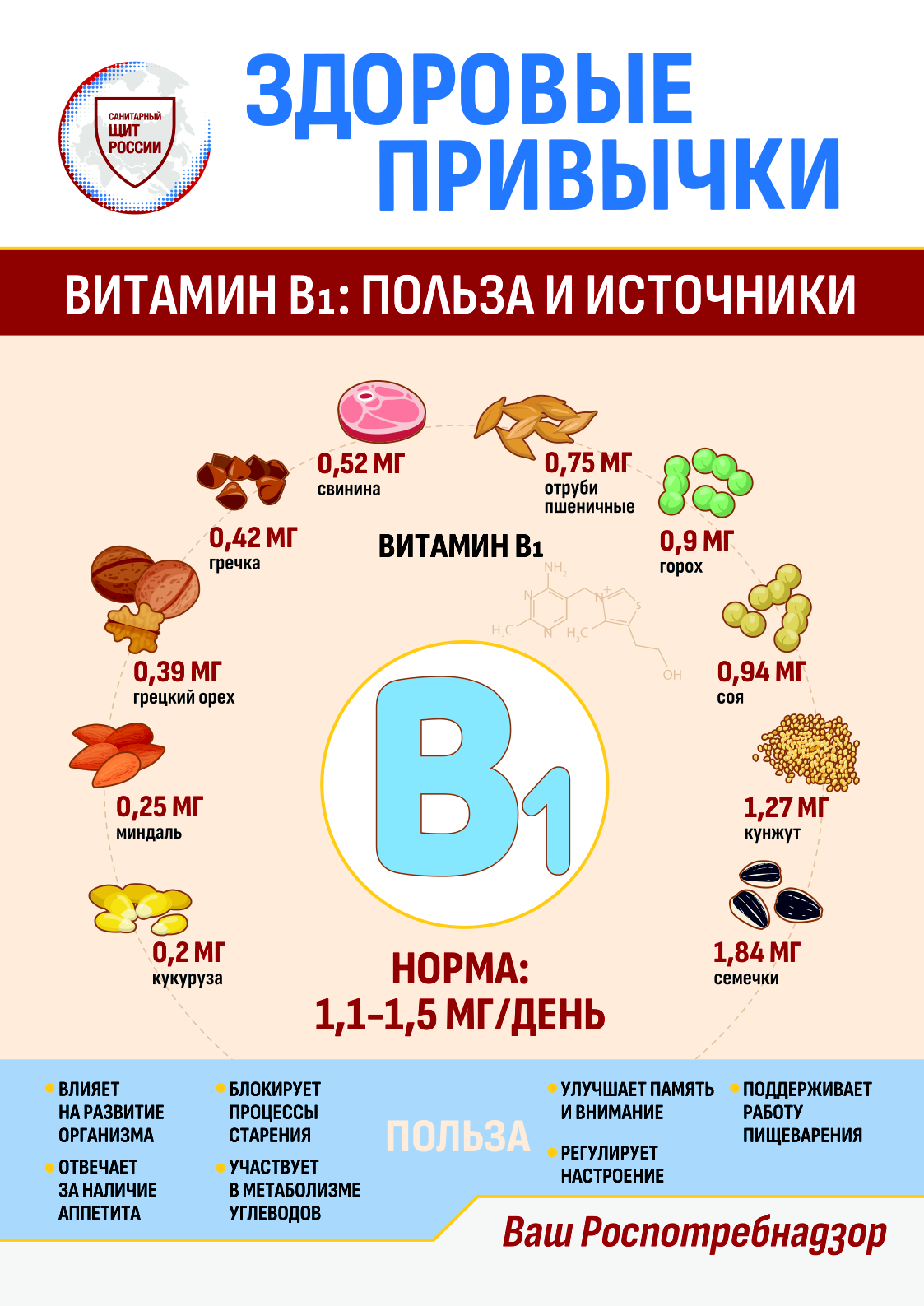 ЗДОРОВЫЕ ПРИВЫЧКИ. ВИТАМИН B1: ПОЛЬЗА И ИСТОЧНИКИ