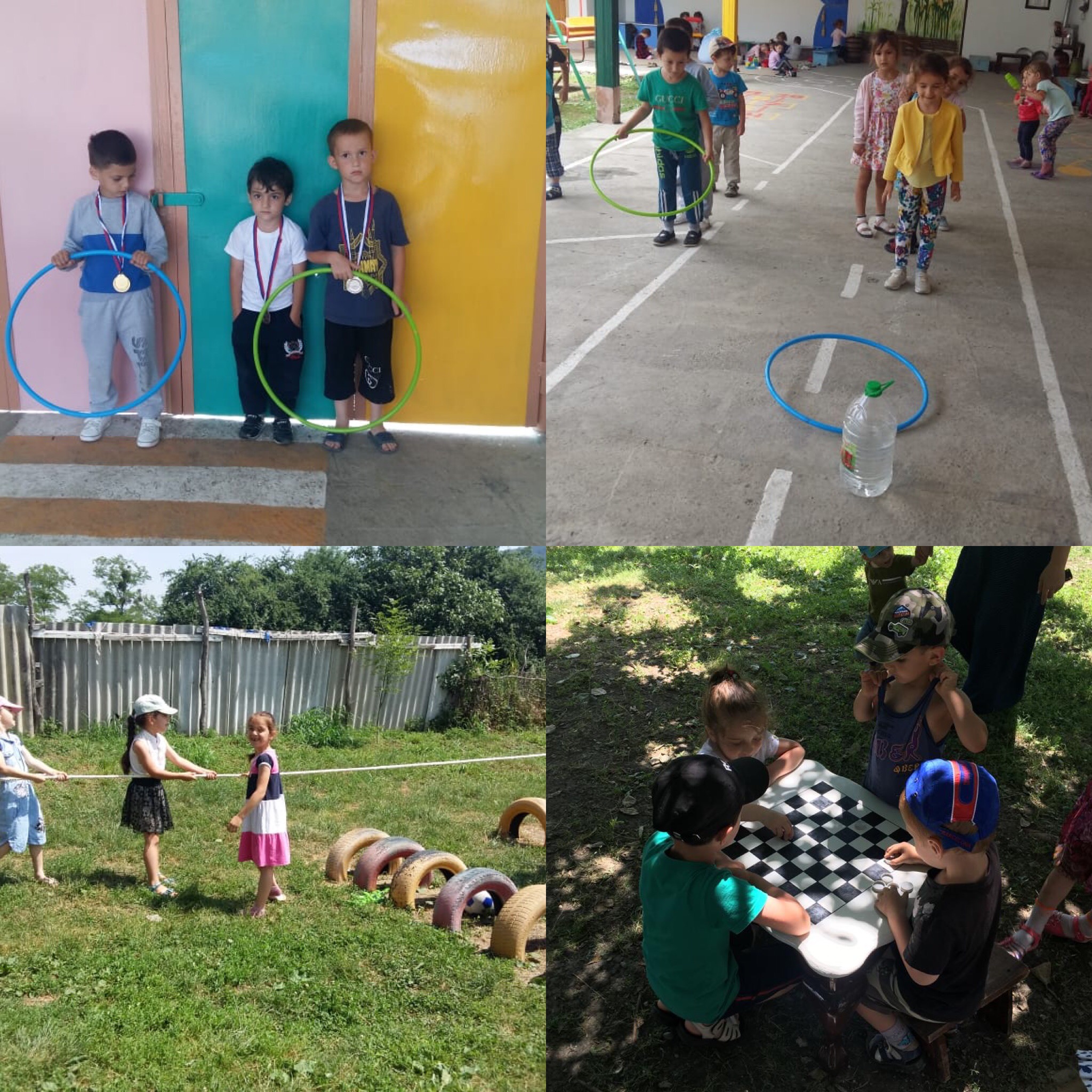 Дети разновозрастной группы (средней и старшей) группы детского сада расположились на групповом участке. Весело прошли подвижные игры «Солнышко и дождик», «Медведь и пчелы», «Барашеньки -крутороженьки» «На лугу мотельки летают». Так же дети пели песни, танцевали, рассказывали стихотворения многое другое.